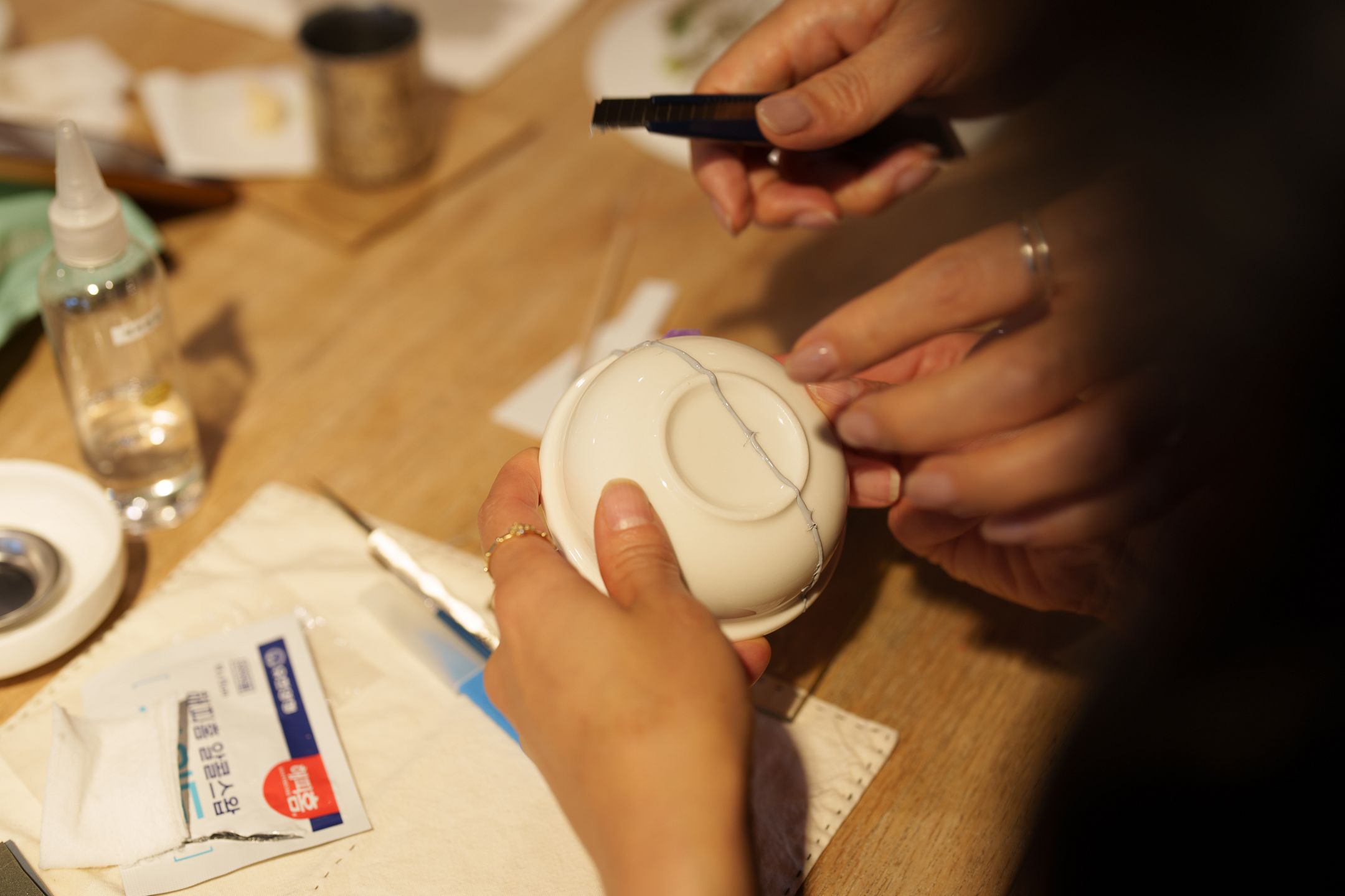 9월 20일 쿠실 공방에서는 ‘킨츠기의 시간’이 진행되었습니다. 참가자들은 깨진 도자 그릇을 조심스럽게 이어 붙이고 마감하며 하나의 그릇을 다시 완성했습니다. 손끝에서 조금씩 형태가 되살아나는 과정이 흥미롭게 이어졌습니다. |