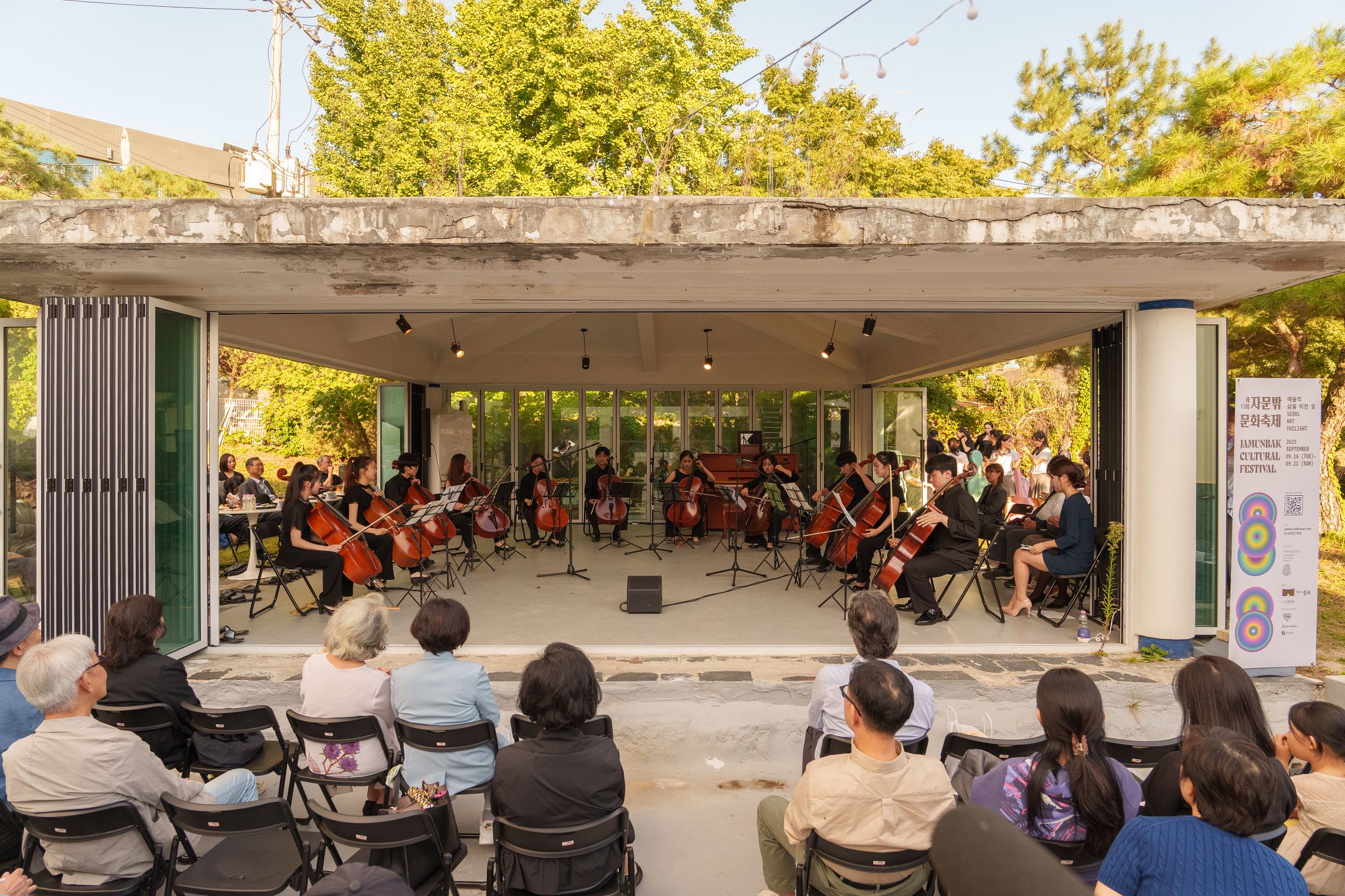 올해도 자문밖문화축제를 여는 오픈콘서트가 자문밖 곳곳에서 이어졌습니다. 축제를 기다려온 주민들에게 가장 먼저 건네는 음악 선물이자, 동네 곳곳을 음악으로 물들이는 시간입니다. 9월 17일 부암아트홀에서는 첼리스트 우지현과 피아니스트 안미현의 듀오 무대가 열렸습니다. 첼로의 낮고 깊은 울림과 피아노의 맑은 선율이 서로 어우러지며, 작은 공연장을 채운 관객들은 차분히 귀를 기울였습니다. 이어 20일 오후 같은 무대에서는 세종 피아노 트리오가 연주를 이어갔습니다. 피아노, 바이올린, 첼로가 주고받는 호흡 속에서 서로 다른 악기의 색깔이 자연스럽게 하나로 이어졌고, 가까운 거리에서 전해지는 연주의 긴장감이 공연장을 가득 메웠습니다 |