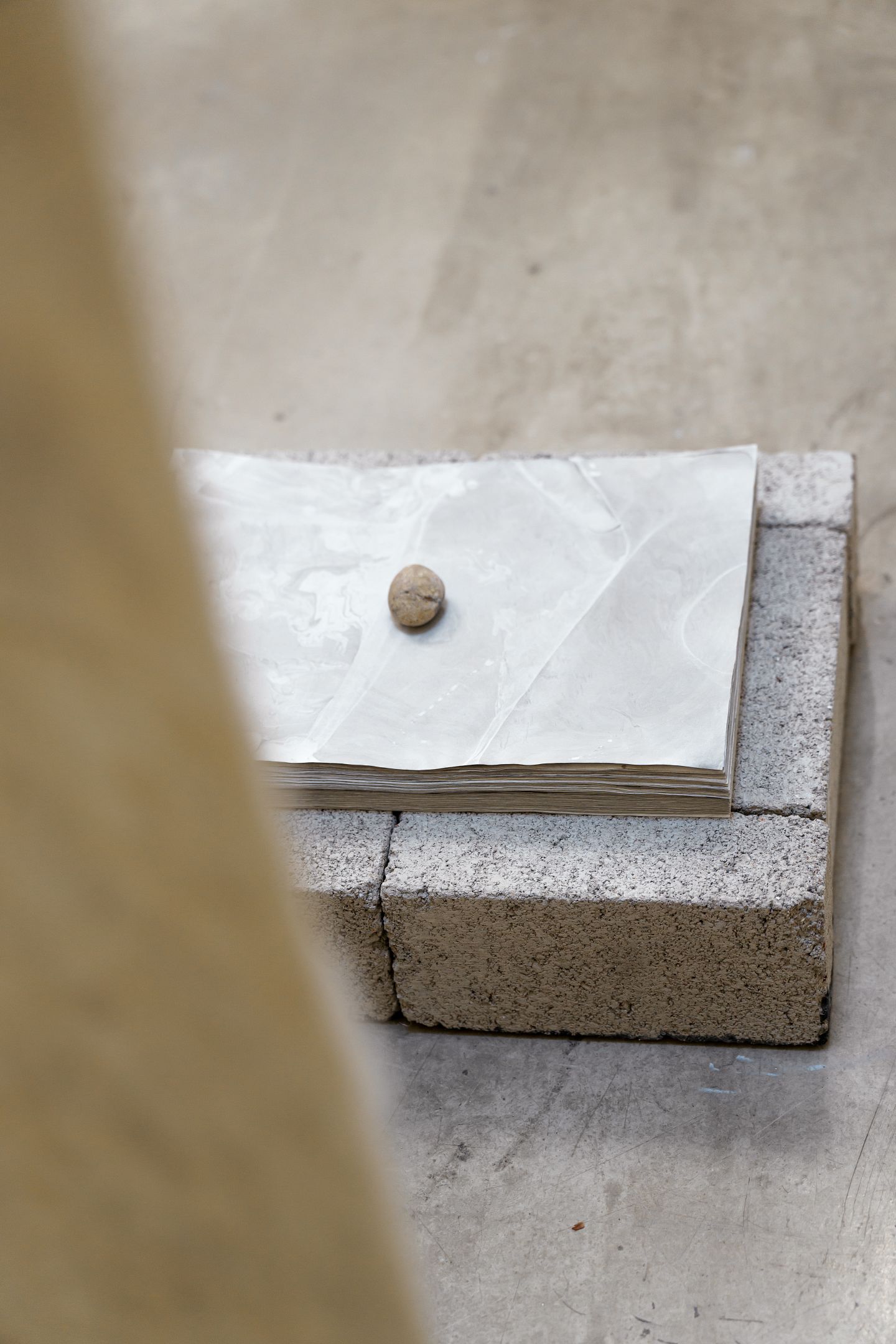 어떤 장소에서 주워온 돌이나 떨어진 나뭇가지 같은 오브제를 채집하는 작업도 계속하고 있고요. 또 표면을 직접 떠내는 방식의 작업도 시도했었습니다. |
