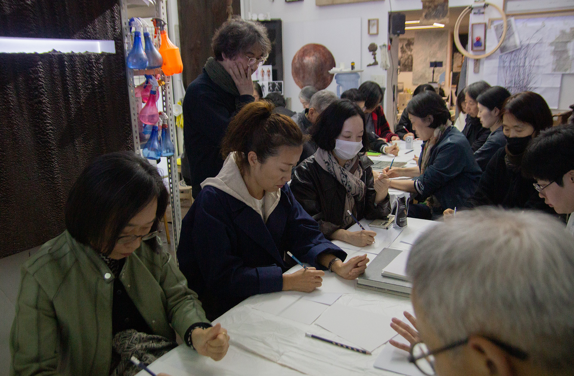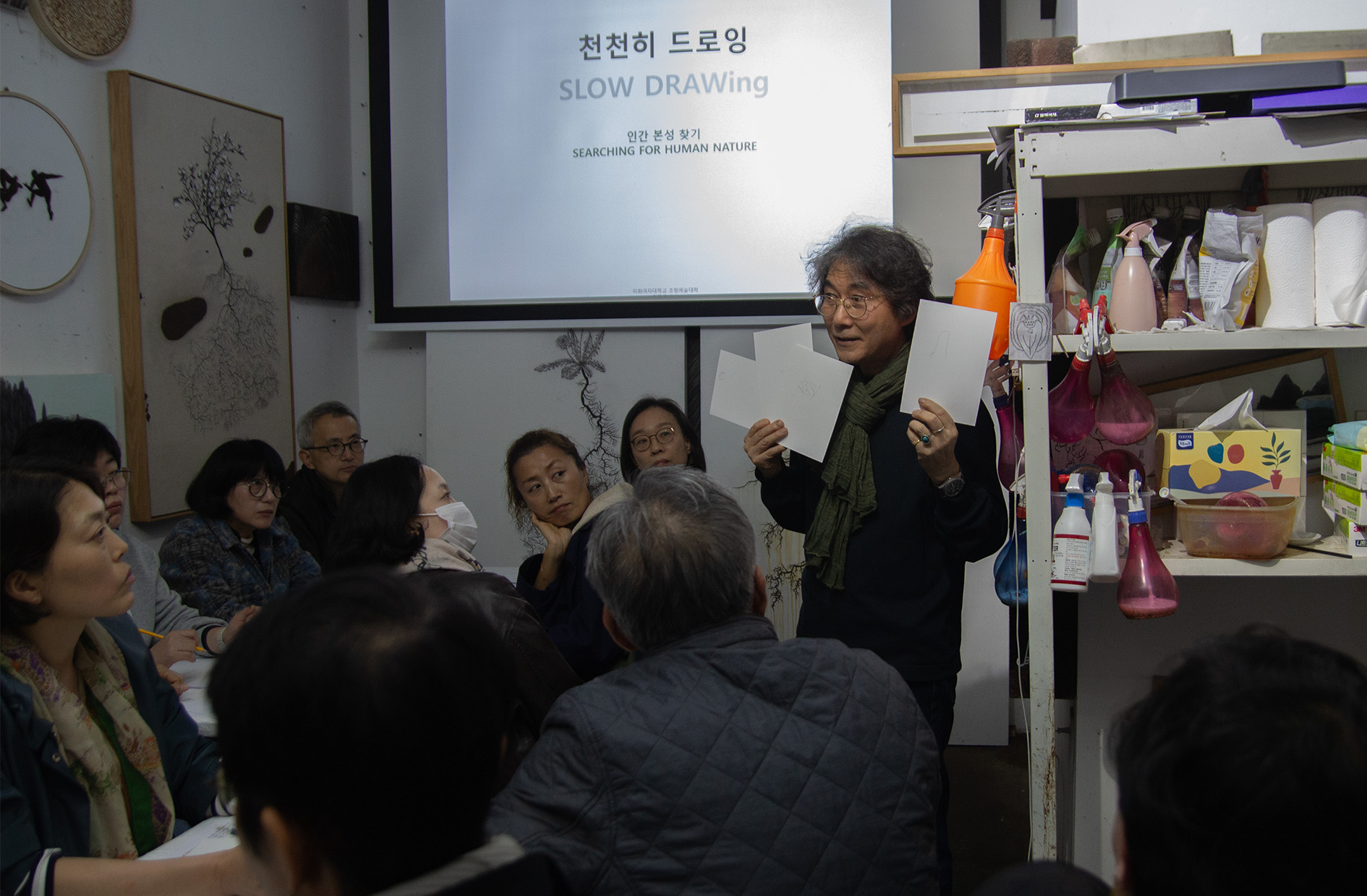 실기 수업은 김종구 이화여대 조소과 교수가 맡았습니다. 김종구 강사는 그림을 잘 그리려는 욕심을 버리고 “보이는 만큼, 천천히 그리라”고 지도했습니다. 참가자들은 ‘1분 드로잉’ 실습을 통해 대상을 세심히 관찰하고 자신을 들여다보는 시간을 가졌습니다. 김종구 강사는 “그림은 누구나 잘 그릴 수 있다”며, 잘하려는 마음보다 자신을 믿는 태도가 중요하다고 강조했습니다. |