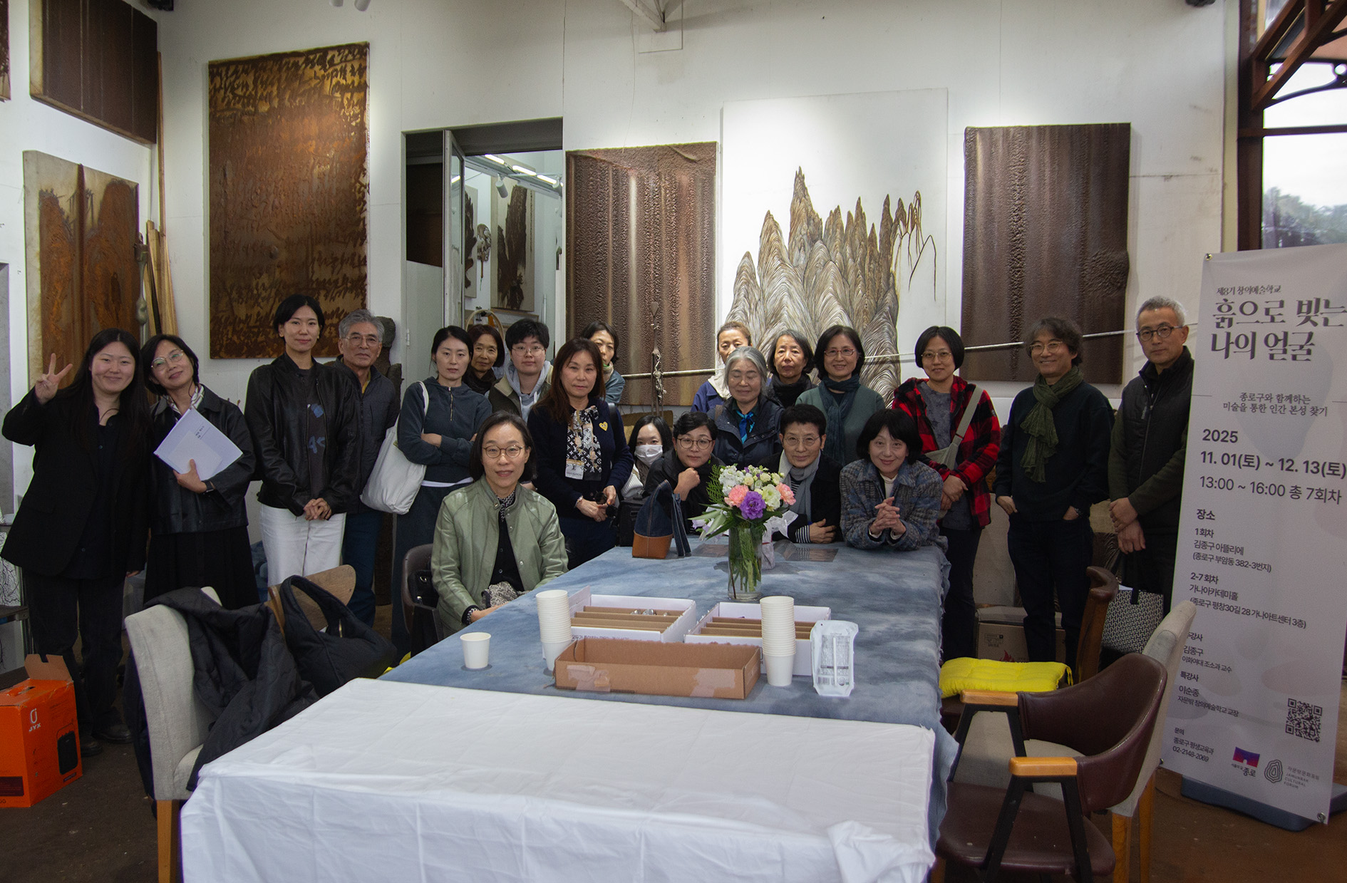 2025년 11월 1일 토요일 오후 1시, 제8기 창의예술학교 ‘흙으로 빚는 나의 얼굴’ 첫 수업이 열렸습니다. 자문밖문화포럼이 주최하고 종로구청이 후원하는 이번 프로그램은 12월 13일까지 7주간 진행될 예정입니다. 개강식에서 이순종 자문밖문화포럼 이사장은 예술을 통해 창의성과 성찰의 힘을 기를 수 있음을 강조하며, “짧은 기간이지만 예술 수업을 통해 자기를 발견하고, 아름다운 삶을 영위하는 데 도움이 되길 바란다”고 말했습니다. 또, 예술이 개인의 내면을 확장할 뿐 아니라 사회와 산업 전반의 변화를 이끄는 힘이 있다고 전했습니다. 이후 특강 ‘예술의 힘’에서는 예술이 창의성과 인성을 아우르는 통찰의 과정임을 설명하며, 예술교육이 현대사회에서 왜 중요한지를 다양한 사례를 통해 이야기했습니다. |