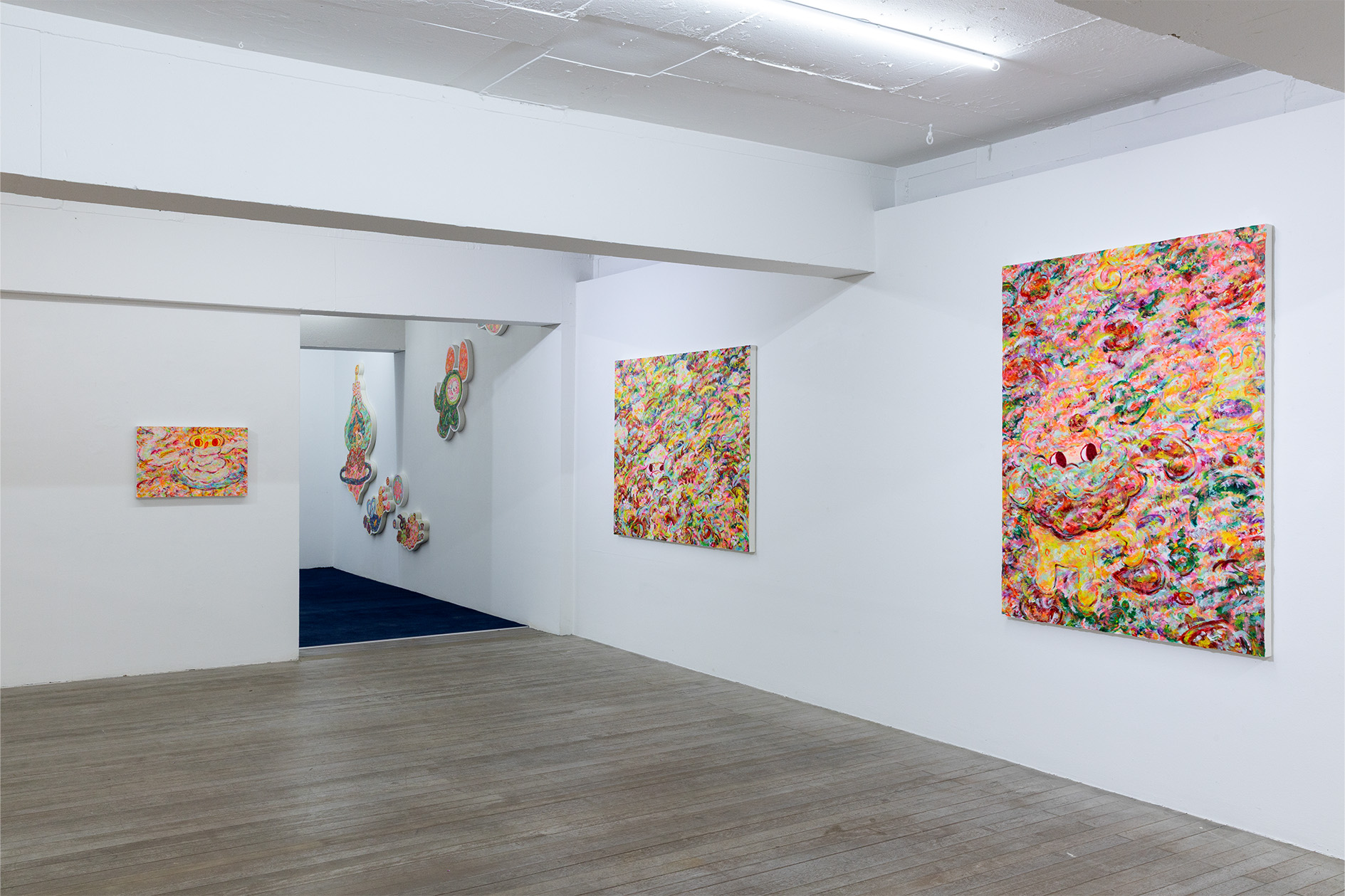 록카쿠는 혼돈 속에서 발생하는 색과 움직임을 그대로 수용하며, 밀고 퍼뜨리고 다시 모아내는 반복적인 행위를 통해 회화를 하나의 호흡적인 과정으로 확장해 왔습니다. 손으로 직접 그린다는 사실은 회화의 물질성과 신체성을 극대화하고, 디지털 이미지가 지배적인 환경 속에서도 회화가 지닌 근원적인 감각성을 다시 환기시킵니다.