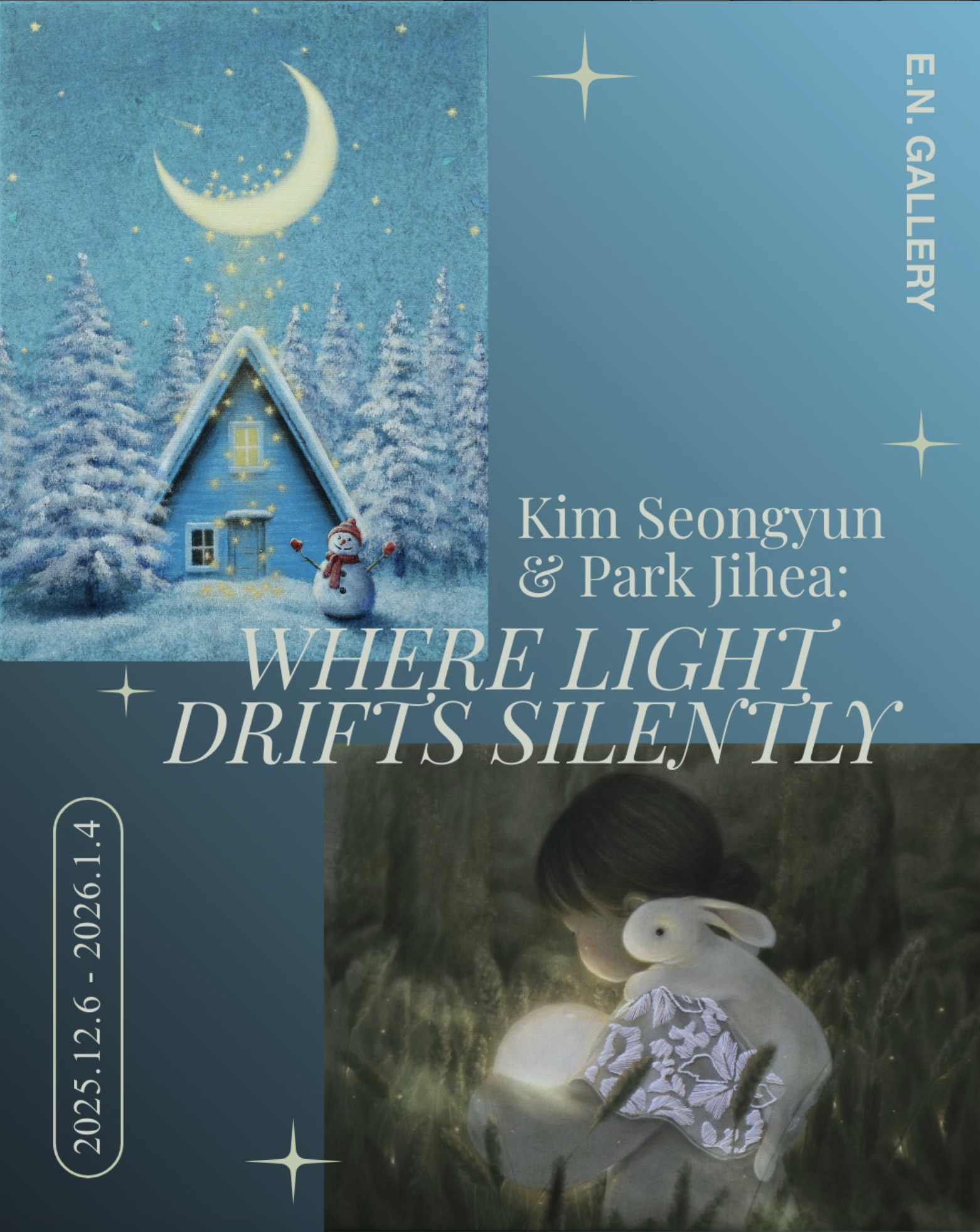 12월, 연말과 크리스마스의 기운이 깊어가는 가운데 이엔갤러리가 Where Light Drifts Silently 전시를 선보입니다. 김성윤·박지혜 두 작가의 작품을 한자리에서 만나며 생명의 따뜻함, 빛의 섬세함, 조용히 흐르는 위로의 순간을 경험해보세요.