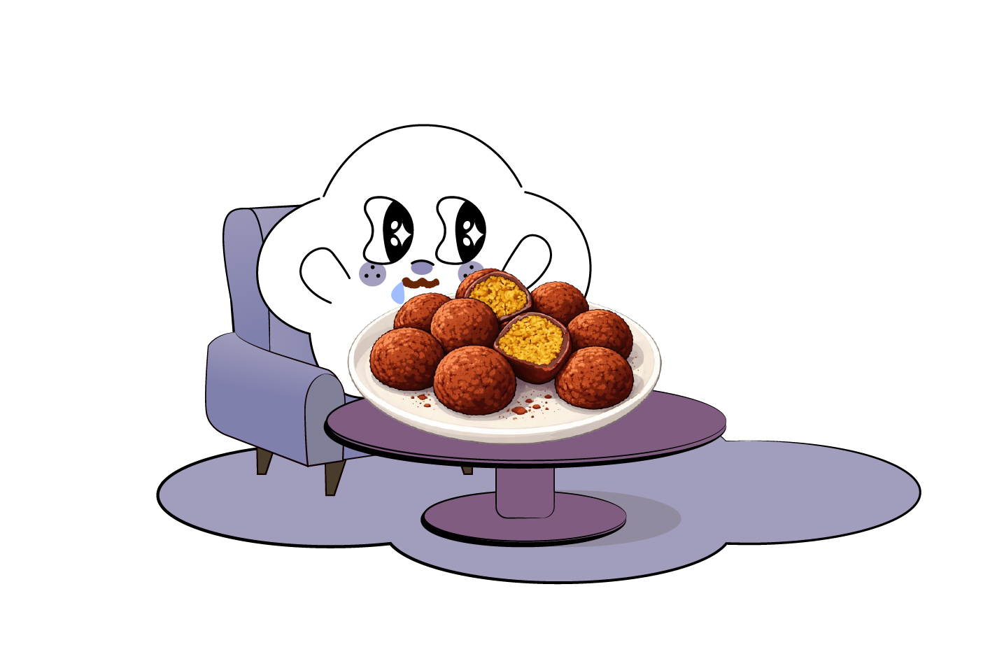 ‘두쫀쿠’는 두바이 쫀득쿠키의 약어랍니다. 상단에 자문이가 먹고 있는 디저트가 바로 두쫀쿠예요. 겉은 동글동글한 찹쌀떡처럼 보이지만, 쫀득한 피를 한 입 베어 물면 속에서 고소한 피스타치오 향이 올라오고 그 사이로 느껴지는 카다이프의 바작한 식감이 그야말로 킥!입니다. 특유의 쫀득함과 재밌는 식감이 정말 중독성 있어요.