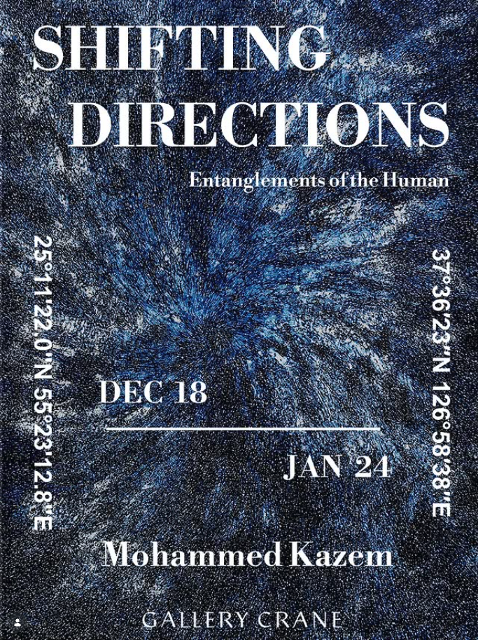 크레인의 여섯 번째 전시, 모하매드 카젬 작가의 개인전 《SHIFTING DIRECTIONS》이 12월 18일부터 열립니다. 이번 전시는 좌표와 방향, 이동의 흔적을 작업의 출발점으로 삼아 공간을 인식하고 경험하는 방식에 대해 질문합니다. GPS 좌표와 숫자, 반복되는 구조를 통해 기록과 측정의 언어는 기능을 벗어나 시각적 풍경으로 전환됩니다.