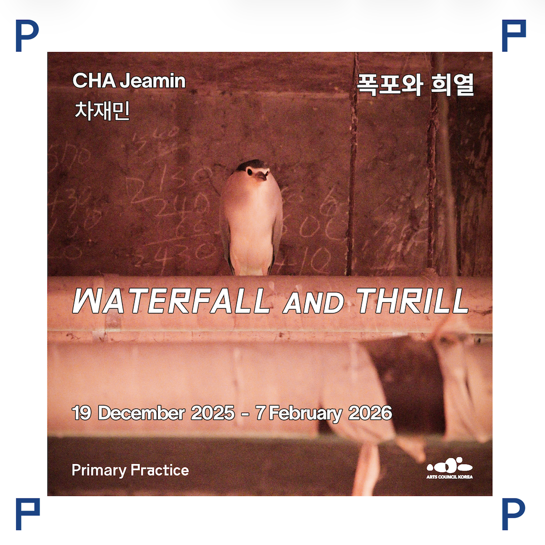 차재민 개인전 《폭포와 희열》은 도심의 인공 폭포와 홍제천 주변의 굴다리, 강변을 하나의 서식지로 삼아 그곳을 오가는 존재들의 정서를 다시 호출한다. ‘폭포’가 같은 자리에서 반복되는 운동의 고통이라면, ‘희열’은 그것을 바라보는 우리에게 스치는 고양된 감각으로서, 두 감정이 교차하는 어긋남에서 전시는 출발한다. 작가는 영상과 드로잉, 콜라주를 통해 머무름과 견딤, 회복의 리듬이 일상 속에서 어떻게 생겨나는지 묻고, 무엇이 중심이 되는가를 끊임없이 흔든다. 그 겹침은 도심의 주변부를 정서의 중심으로 옮겨 놓으며 우리가 지나치던 감각을 다시 깨운다.