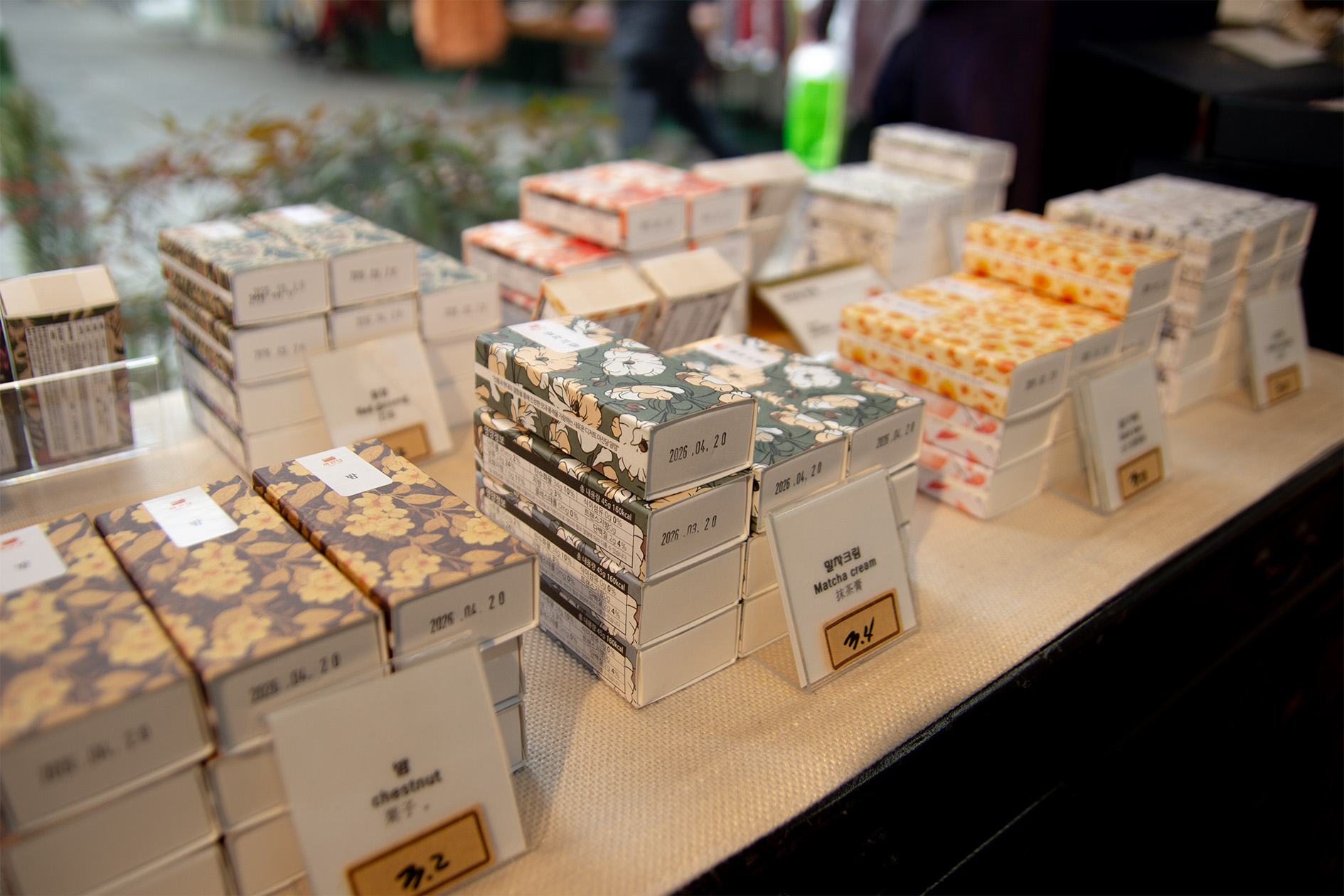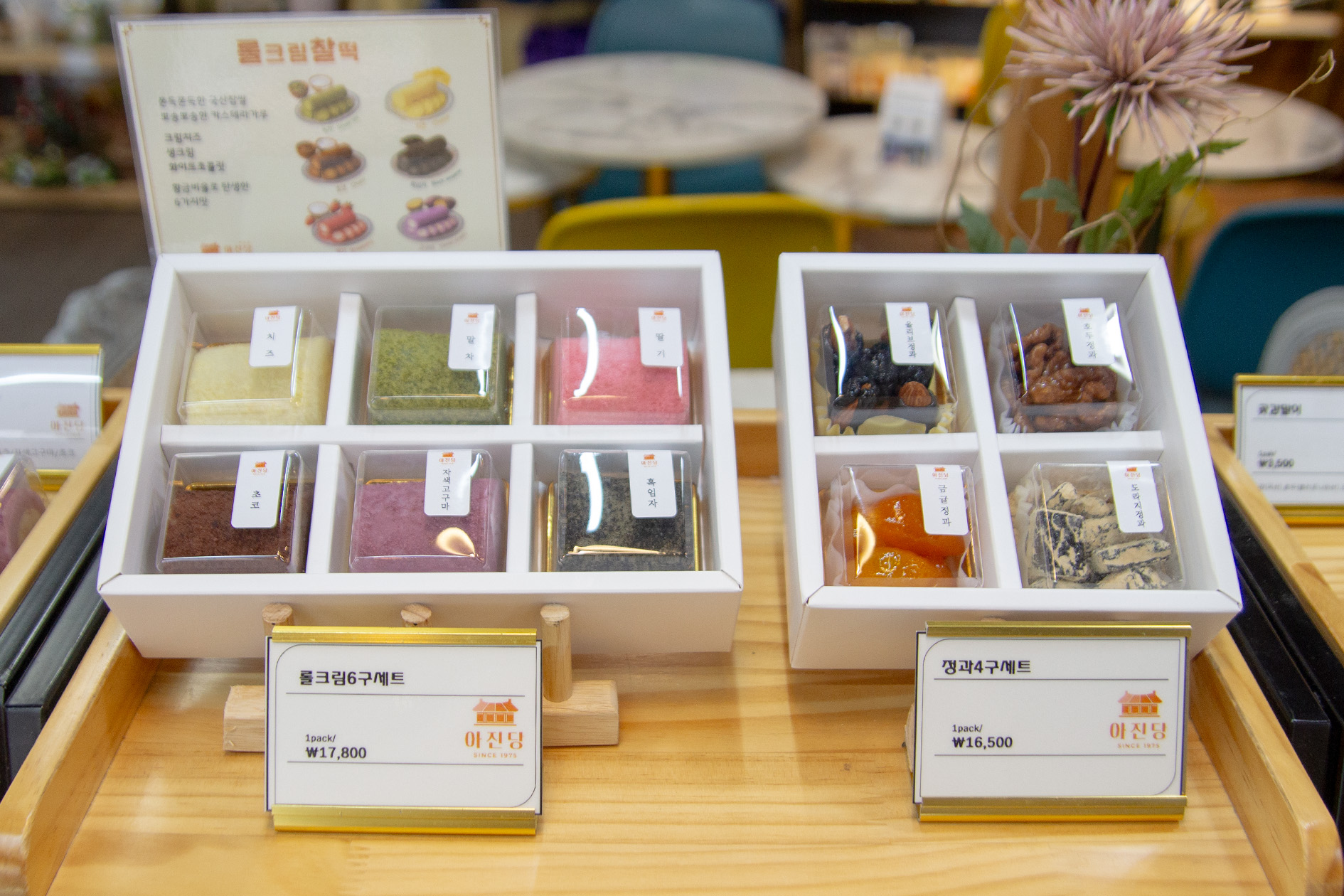 예를 들어 금귤정과도, 이름은 들어봤는데 “이게 금귤정과야?” 하고 궁금해서 한 번 먹어보고 “아 이런 거구나” 하는 식이에요. 외국 분들은 더 모르시니까, 비주얼적으로 예쁜 게 있으면 일단 손이 먼저 가기도 하고요. 그래서 찹쌀떡도 색깔을 알록달록하게 하기도 해요. 단, 기본 떡은 그대로 가요. 꿀떡, 바람떡, 송편 같은 것들은 워낙 기본이니까 갖추고 있고요. 대신 꾸준히 변화를 주려고 해요. 이번에도 요거트 들어간 떡이 들어오는데, 그런 식으로 조금씩, 한두 개씩 바꿔 가는 거죠. |