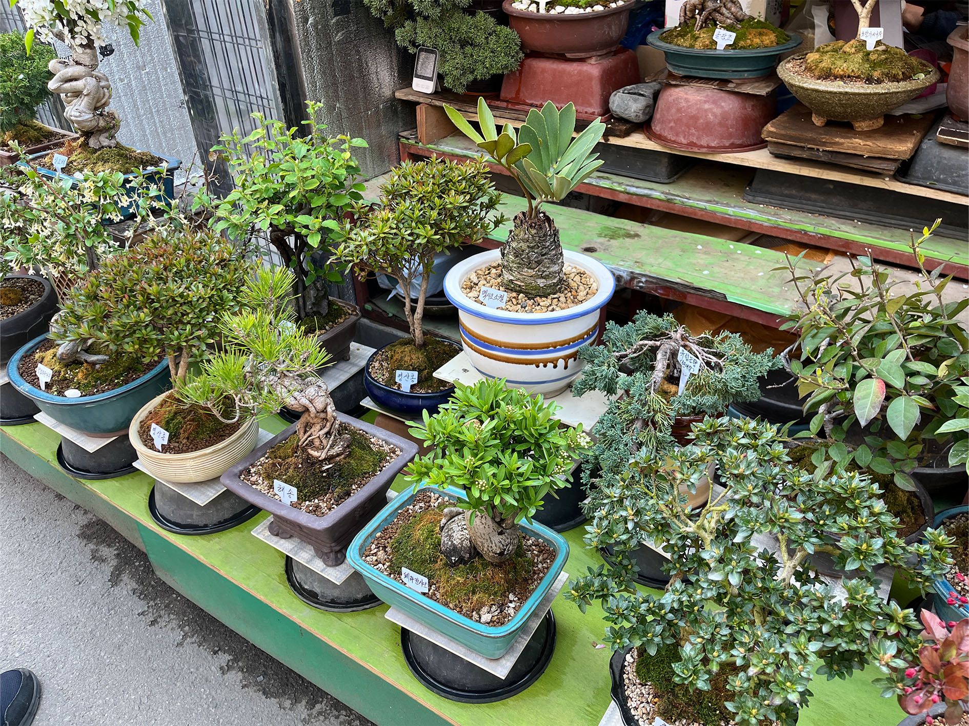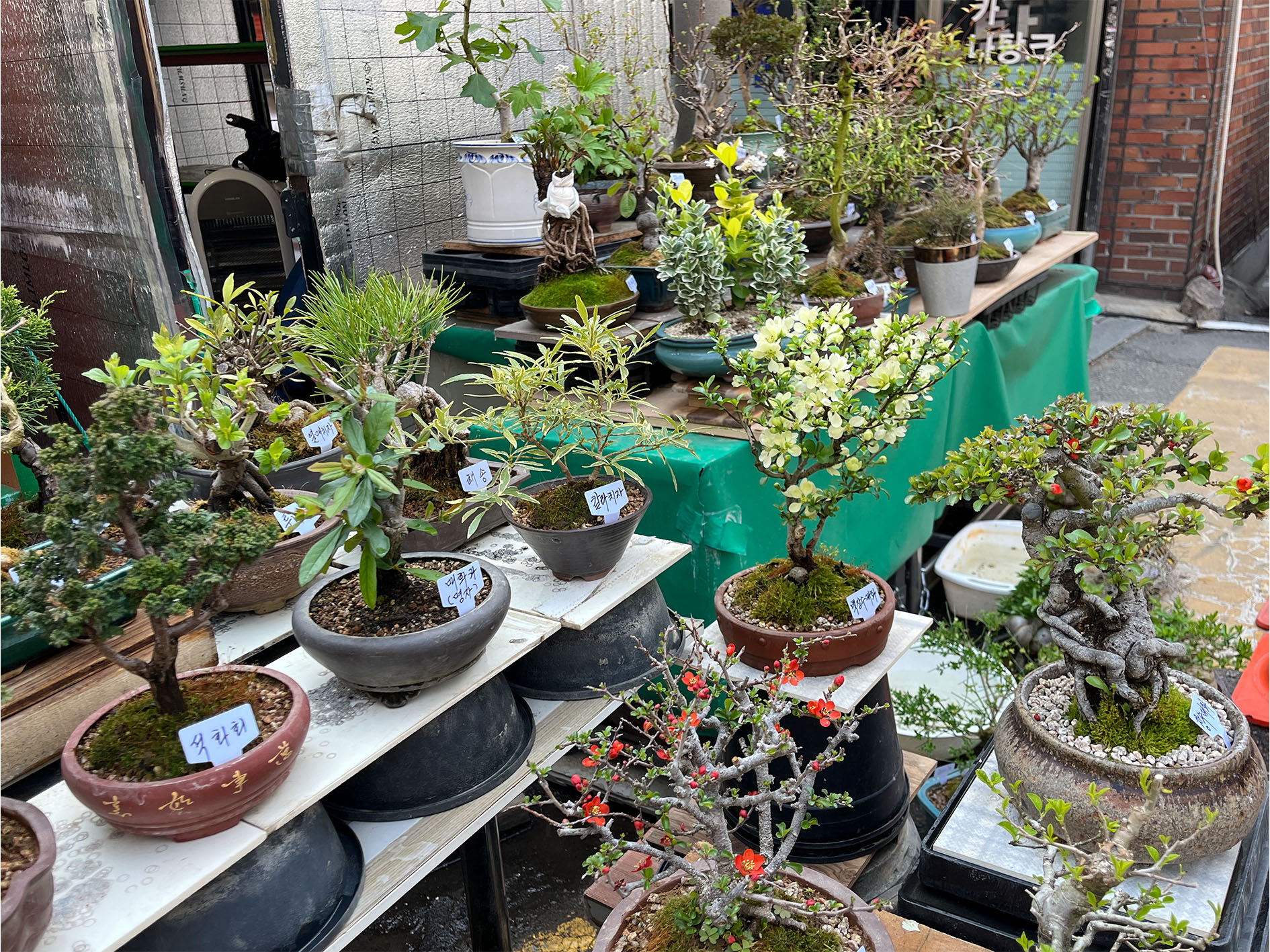 식목일을 앞둔 종로 꽃 시장은 다양한 나무와 식물, 꽃들로 활기가 넘쳤습니다. 주말농장용 큰 나무부터 실내에서 아담하게 키울 수 있는 소형 식물까지, 크기도 종류도 정말 다양했어요. 자문이도 눈이 반짝이며 둘러보다가 결국 '소사나무' 분재를 하나 모셔왔답니다.
