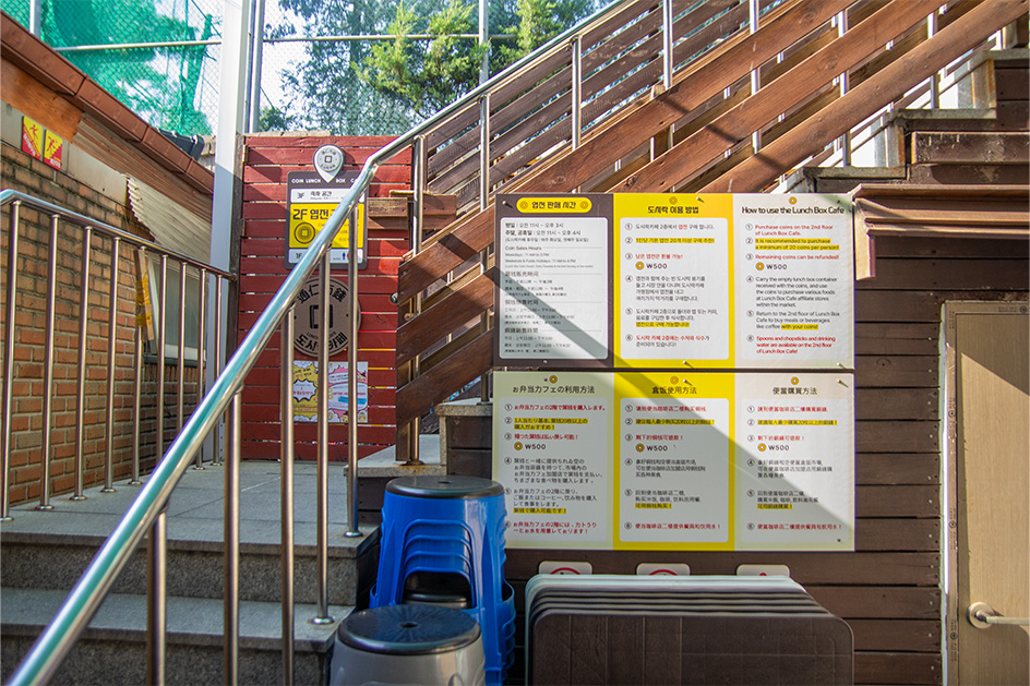 도시락카페 이용시간 : 월,수-금 11:00 - 15:00, 토,일 11:00 - 16:00