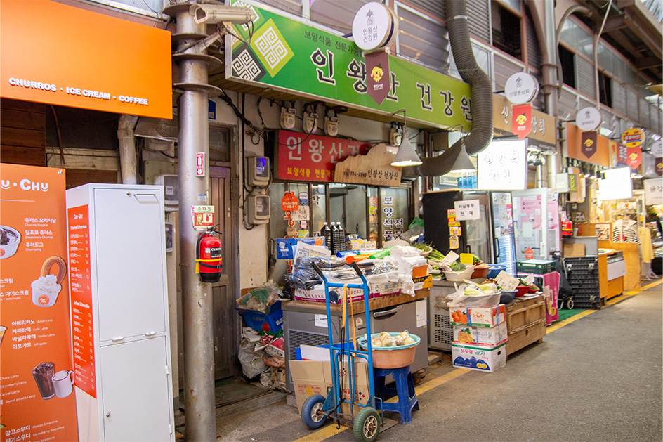 역시 시장이라면 건강원! 인근의 인왕산 정기가 가득 담겨있을 것만 같은 인왕산 건강원도 한 자리를 지키고 있어요. |